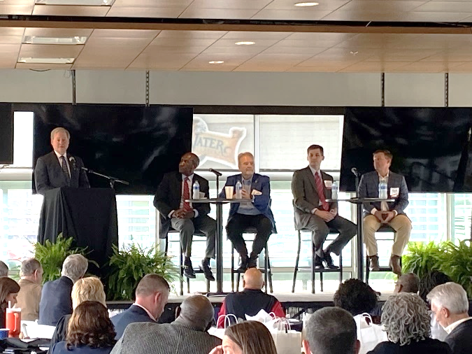 S.C. Commerce Secretary Harry Lightsey leads a legislative panel discussion with Representative Bill Clyburn, Senator Brad Hutto, Senator Shane Massey and Representative Russell Ott.